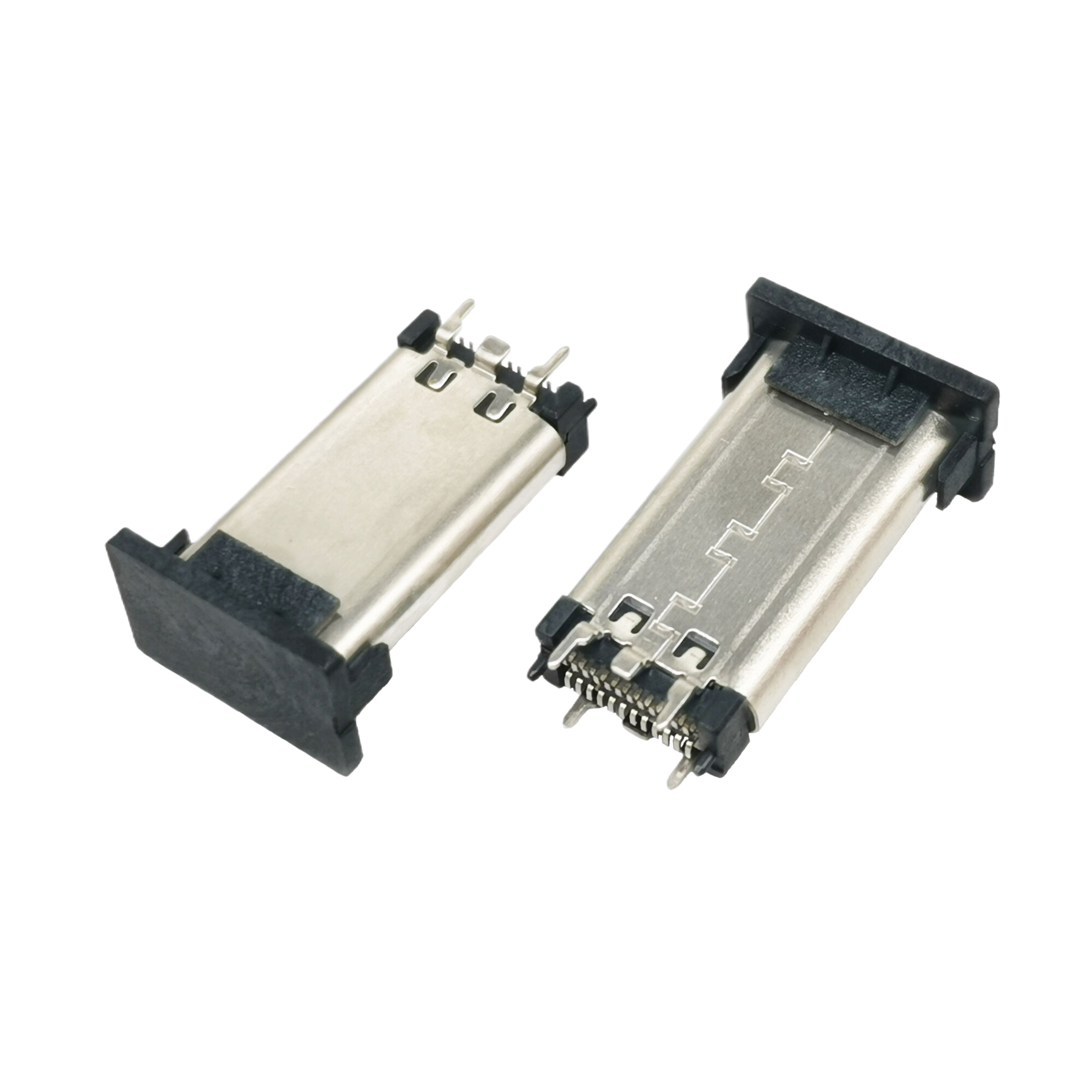 TYPE C 24P母座 四腳插板,板上雙貼SMT CH=3.68MM 墊高2.0MM L=9.1MM 雙殼